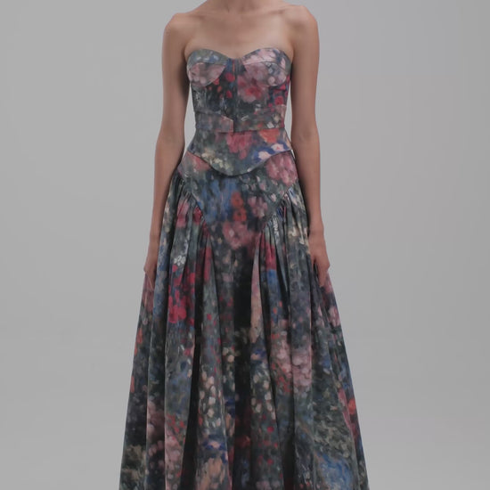 The Begonia Maxi Skirt features a high-waisted design with deep pleats that create volume and fluidity. Crafted in a vibrant floral print, it offers a dramatic yet elegant silhouette, perfect for both formal and statement daywear.