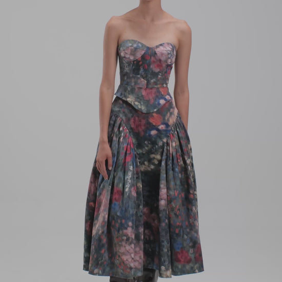 The Begonia Midi Skirt features a high waist and soft gathering that flows into a full, flared silhouette. Crafted in a vibrant floral print, it offers movement and elegance, making it a standout piece for both day and evening wear.