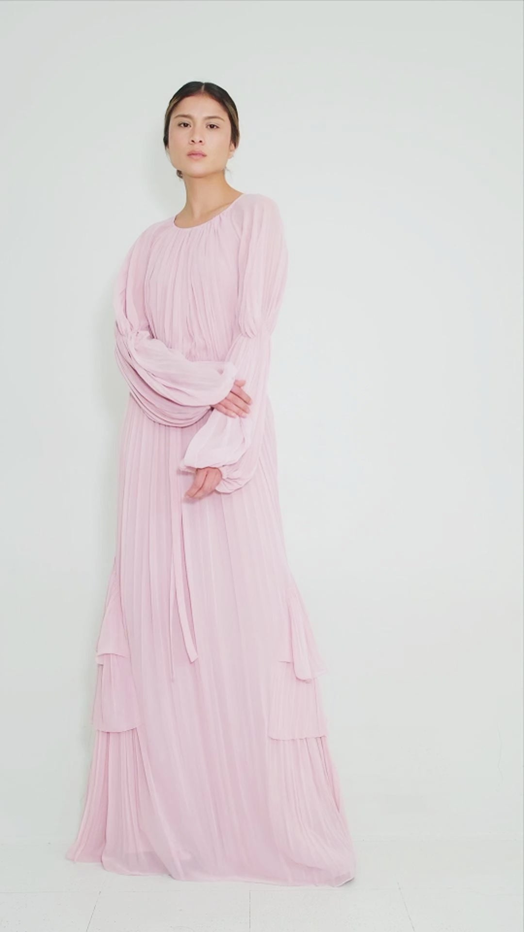 The Sublime Maxi Dress blends romance and elegance, flowing beautifully with every step. Crafted from soft, lightweight fabric, its layered gathered panels create volume and movement, while billowing sleeves and a defined waist enhance the silhouette, making it versatile for both dressy and casual occasions.