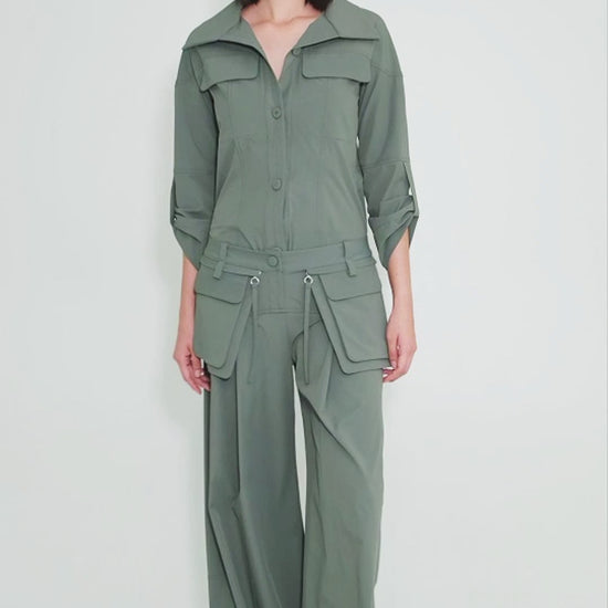The Superficie Shirt combines structure and elegance with a defined silhouette, utility-inspired flap pockets, and a refined button-front closure. Subtly tailored with rolled sleeves, it offers versatile styling for both casual and elevated looks.